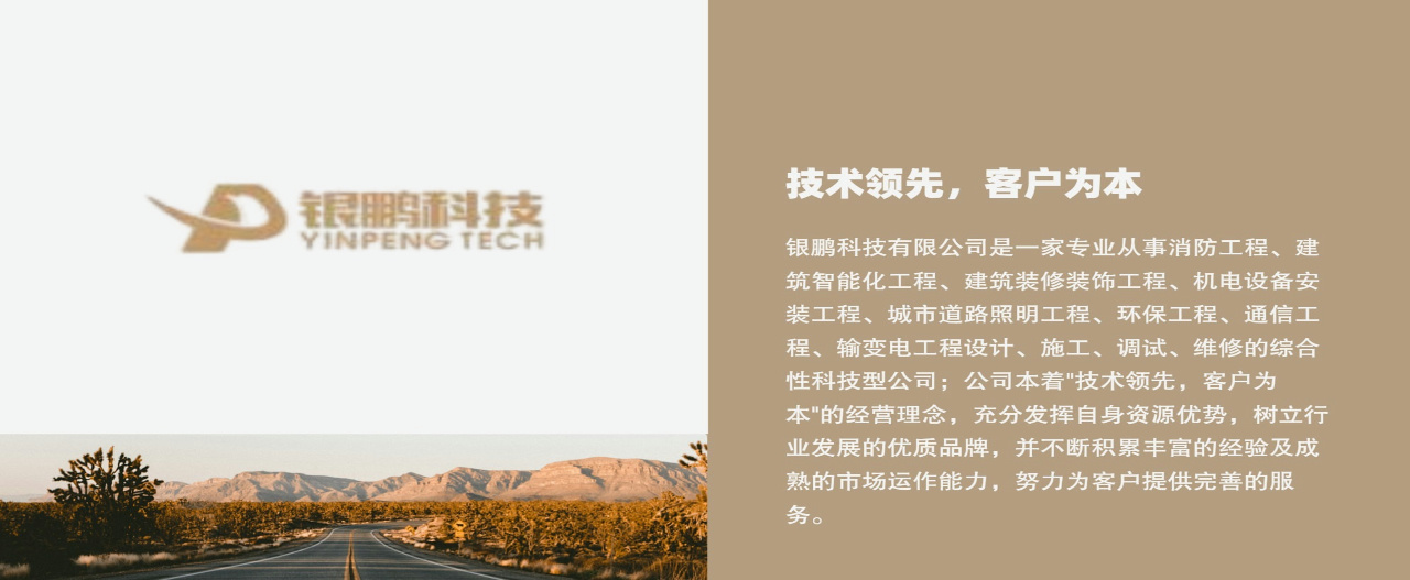 銀鵬科技有限公司是一家專業從事消防工程、建筑智能化工程、建筑裝修裝飾工程、機電設備安裝工程、城市道路照明工程、環(huán)保工程、通信工程、輸變電工程設計、施工、調試、維修的綜合性科技型公司。公司具有建設主管部門頒發(fā)的《建筑業企業資質證書》:建筑裝修裝飾工程專業承包壹級、消防設施工程專業承包壹級、電子與智能化工程專業承包壹級、防水防腐保溫工程專業承包壹級、建筑機電安裝工程專業承包壹級資質、通信工程總承包貳級、市政公用工程施工總承包貳級、建筑工程施工總承包貳級、古建筑工程專業承包貳級、機電工程施工總承包貳級、輸變電工程貳級、特種工程(特種防雷)專業承包不分等級、智能...